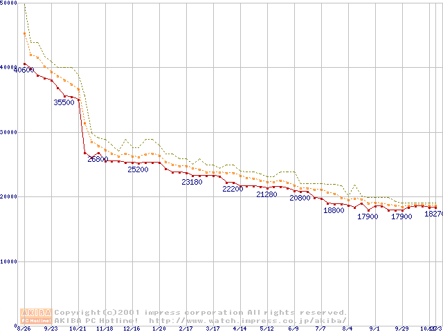 Pentium III 866MHz SECC2 リテールパッケージの価格推移