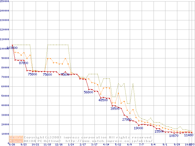 メモリ主要製品の最安値推移