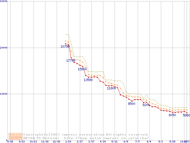 Celeron 800MHz FC-PGA リテールパッケージの価格推移