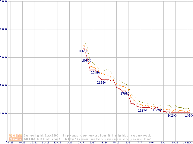 Athlon 1.13GHz(FSB266) (Thunderbird) バルクの価格推移