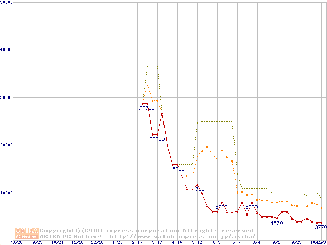 PC2100(DDR266) DDR SDRAM DIMM ECC対応の最安値推移