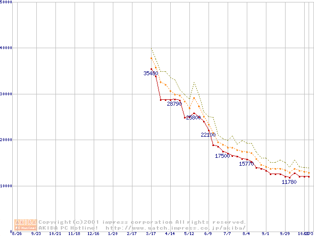 Athlon 1.33GHz(FSB266) (Thunderbird) バルクの価格推移