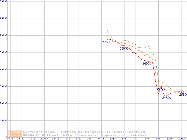 Pentium 4 1.7GHz(423pin)リテールパッケージ(128MB)の価格推移