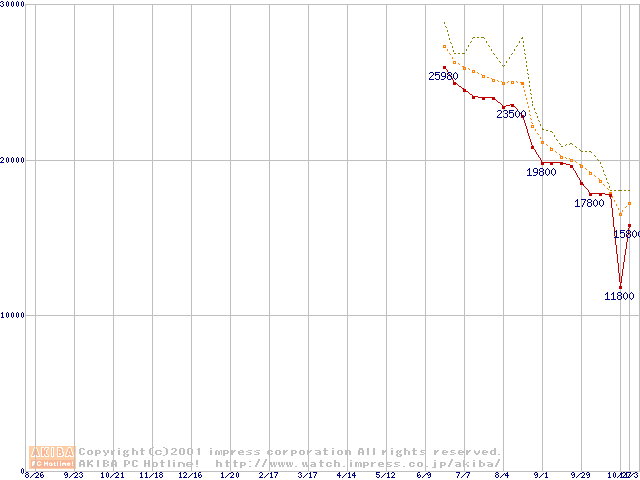 Socket A (Palomino,PGA,FSB 266MHz,L2 256KB)の最安値推移