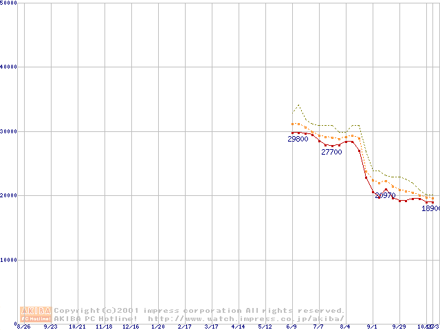 Socket A (Palomino,PGA,FSB 266MHz,L2 256KB)の最安値推移