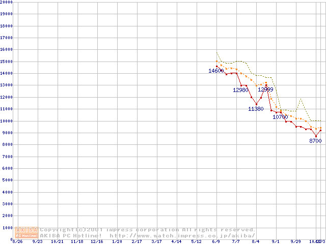 Duron 950MHz リテールパッケージの価格推移