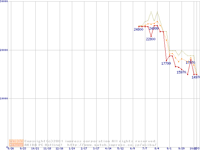 Pentium 4 1.4GHz(423pin)リテールパッケージ(RIMMなし)の価格推移
