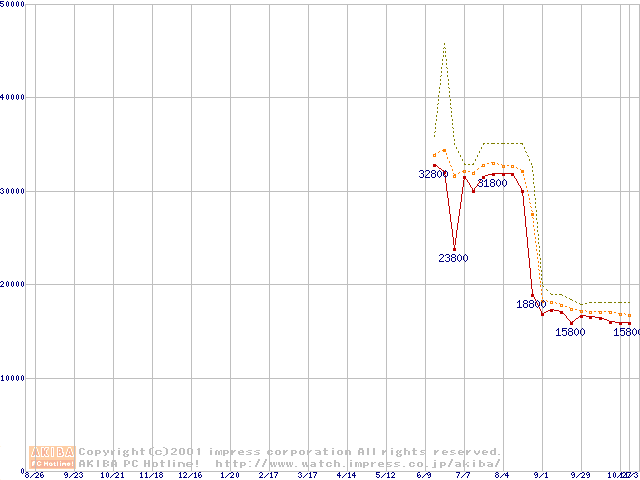 Pentium 4 1.5GHz(423pin)リテールパッケージ(RIMMなし)の価格推移