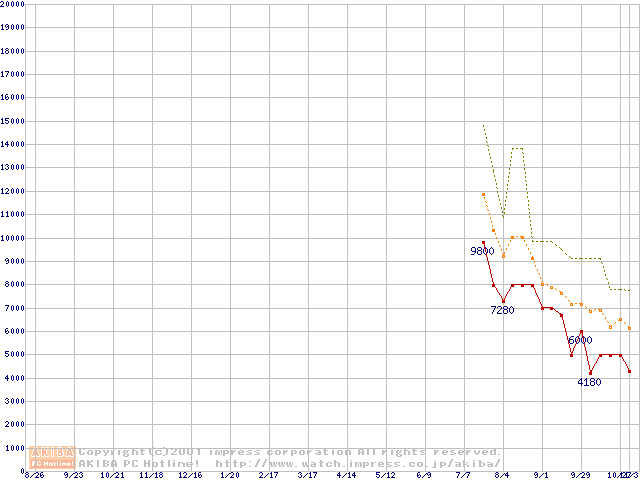 メモリ主要製品の最安値推移