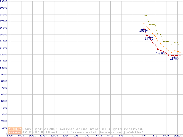 HDD主要製品(最安値1万円~1万5千円未満)の最安値推移