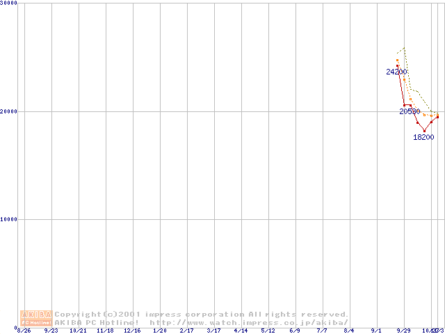 Socket 370 (FC-PGA,FSB 100MHz,L2 256KB)の最安値推移