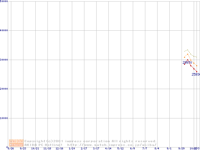 Socket A (Palomino,OPGA,FSB 266MHz,L2 256KB)の最安値推移