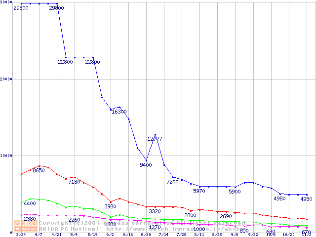 | [↑前グラフ]: | PC150 SDRAM DIMMの最安値推移 |