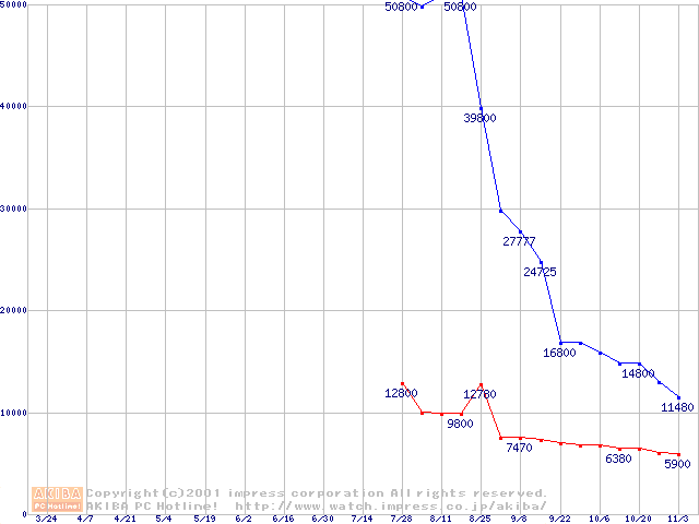 | [↑前グラフ]: | PC2100(DDR266) DDR SDRAM DIMMの最安値推移 |
