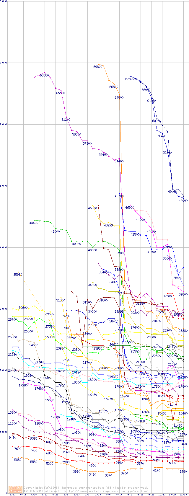 CPU主要製品の最安値推移