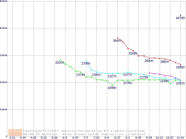 | [↓次グラフ]: | メモリ主要製品の最安値推移 |