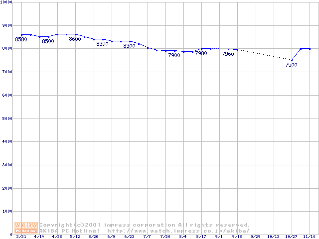 | [↑前グラフ]: | HDD主要製品の最安値推移 |