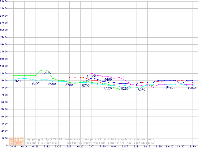 | [↑前グラフ]: | HDD 10GB~20GB未満(5400rpmクラス)の最安値推移 |
