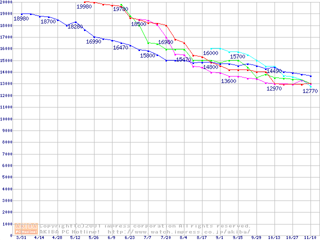 | [↓次グラフ]: | HDD 80GB以上(5400rpmクラス)の最安値推移 |