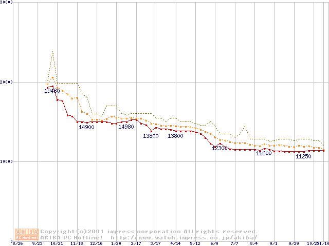 WD Caviar (7200rpm UltraATA/100 20GB/Platter)の最安値推移