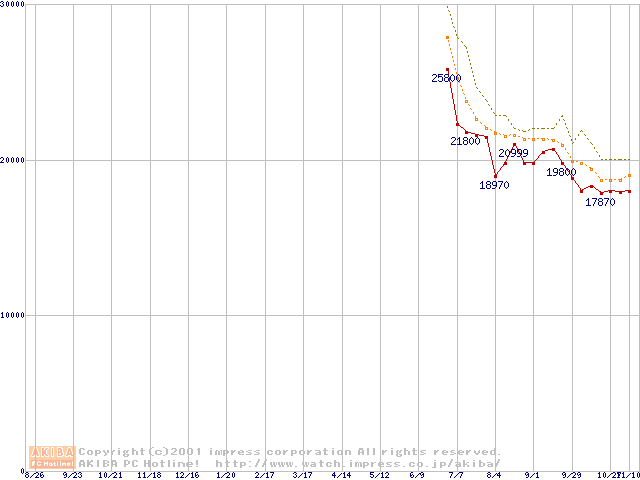 HDD主要製品(最安値1万5千円~2万円未満)の最安値推移