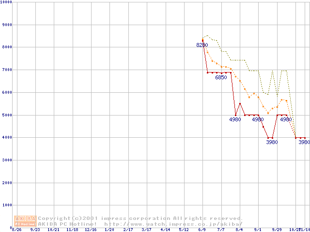 Socket 370 (PGA,FSB 133MHz,L2 64KB)の最安値推移