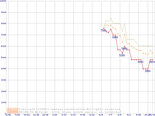 VIA C3 750AMHz リテールパッケージの価格推移