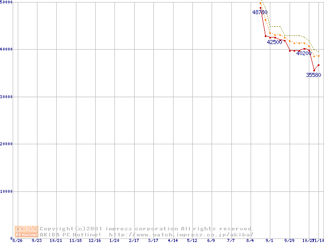 Socket 370 (FC-PGA2,FSB 133MHz,L2 512KB)の最安値推移