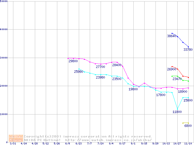 | [↑前グラフ]: | Socket A (Palomino,OPGA,FSB 266MHz,L2 256KB)の最安値推移 |