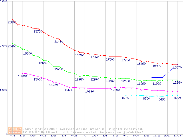 | [↑前グラフ]: | U5 (5400rpm UltraATA/100 512KB)の最安値推移 |