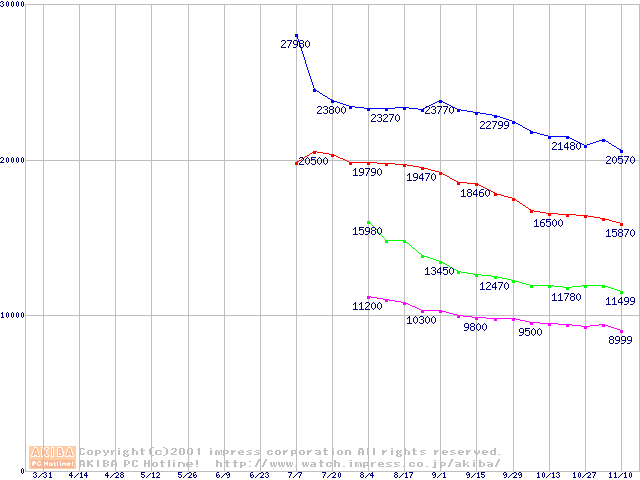 | [↑前グラフ]: | Fireball Plus AS (7200rpm UltraATA/100 2MB)の最安値推移 |