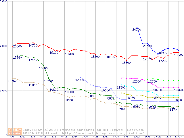 | [↑前グラフ]: | Socket 370・FSB 133MHzの最安値推移 |