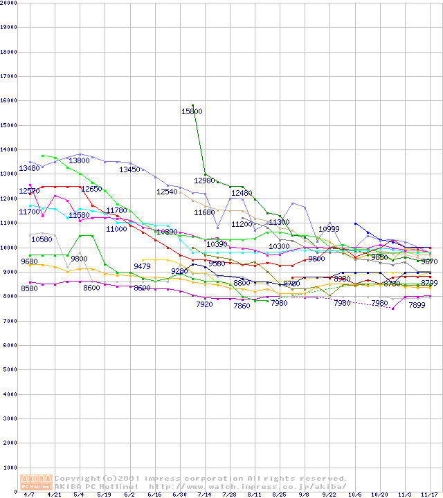 HDD主要製品の最安値推移