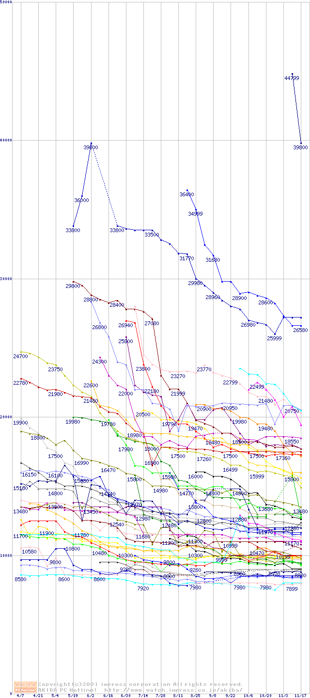 HDD 10GB~20GB未満(5400rpmクラス)の最安値推移