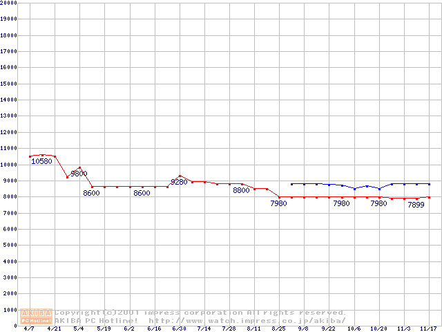 | [↑前グラフ]: | HDD 80GB以上(5400rpmクラス)の最安値推移 |