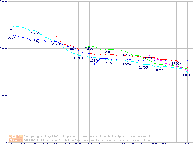 | [↓次グラフ]: | HDD 80GB以上(7200rpmクラス)の最安値推移 |