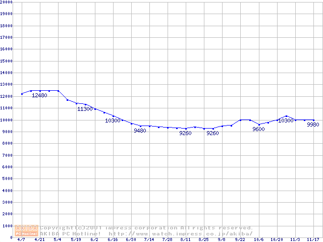 | [↑前グラフ]: | HDD 20GB~30GB未満(5400rpmクラス)の最安値推移 |