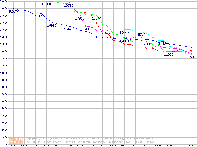 | [↓次グラフ]: | HDD 80GB以上(5400rpmクラス)の最安値推移 |