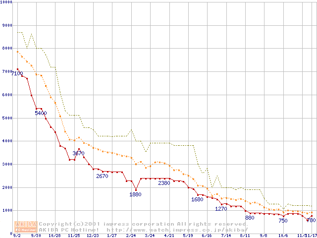 PC133 SDRAM DIMM CasLatency=3の最安値推移