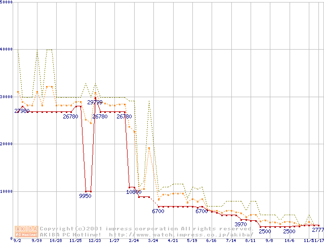 PC800 DRDRAM RIMMの最安値推移