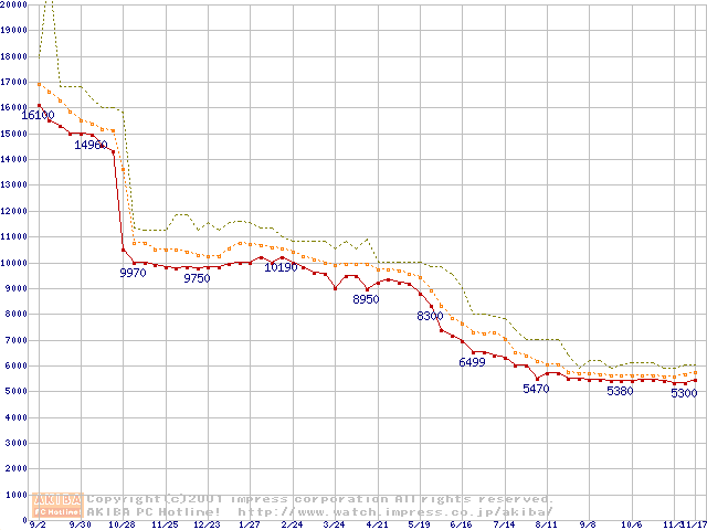 Celeron 700MHz FC-PGA リテールパッケージの価格推移