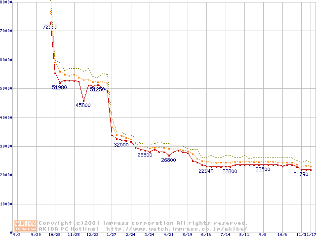 Pentium III 1BGHz FC-PGA リテールパッケージの価格推移