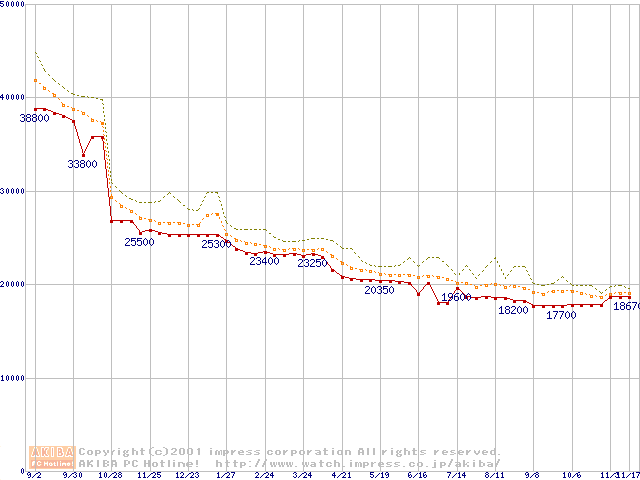 Pentium III 866MHz FC-PGA リテールパッケージの価格推移