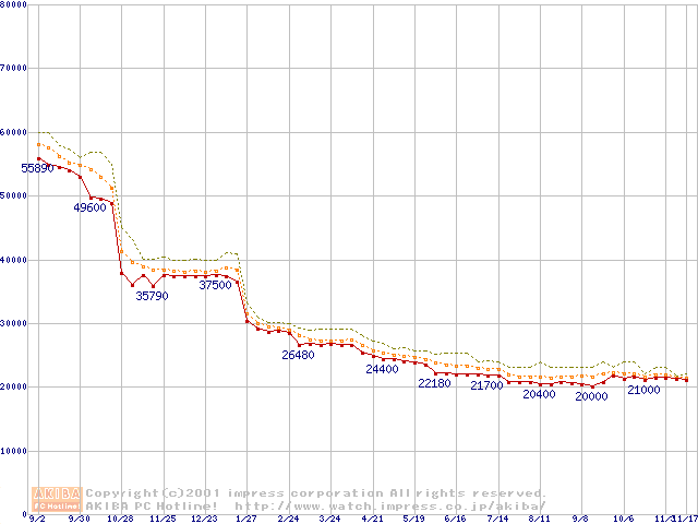 Pentium III 933MHz FC-PGA リテールパッケージの価格推移