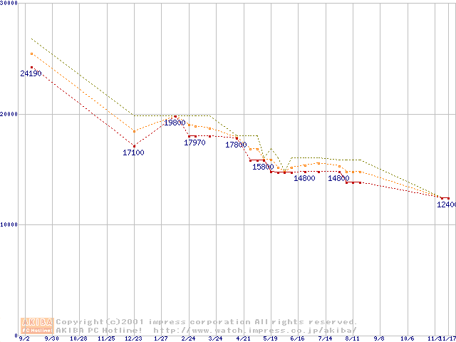 Slot 1 (SECC2,FSB 100MHz,L2 256KB)の最安値推移