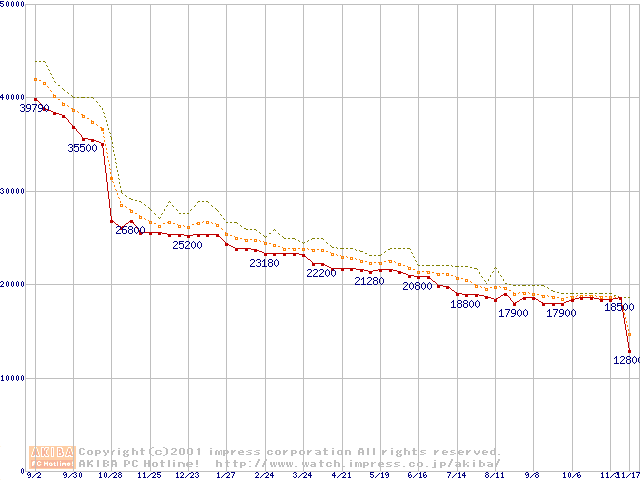 Pentium III 866MHz SECC2 リテールパッケージの価格推移