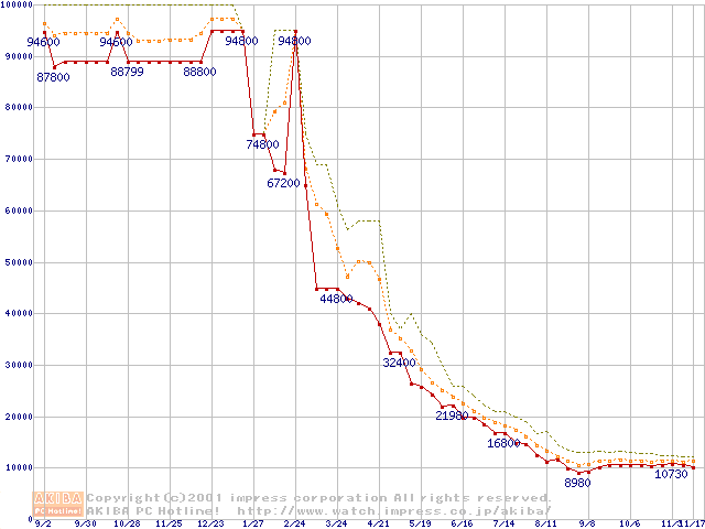 メモリ主要製品(最安値5千円~1万円未満)の最安値推移