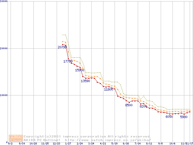 Celeron 800MHz FC-PGA リテールパッケージの価格推移