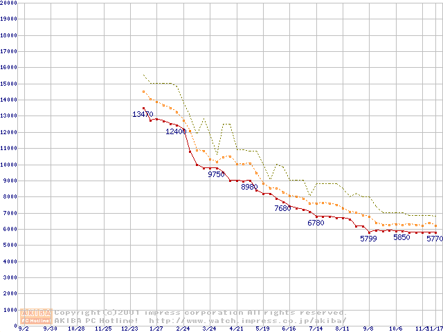 Socket A (Spitfire,PGA,FSB 200MHz,L2 64KB)の最安値推移