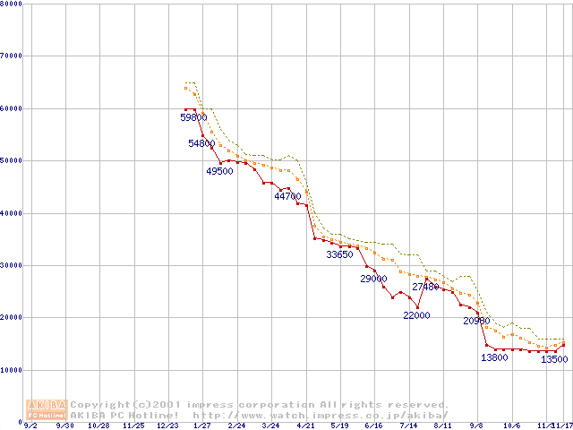 Pentium 4 1.3GHz(423pin)リテールパッケージ(128MB)の価格推移